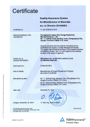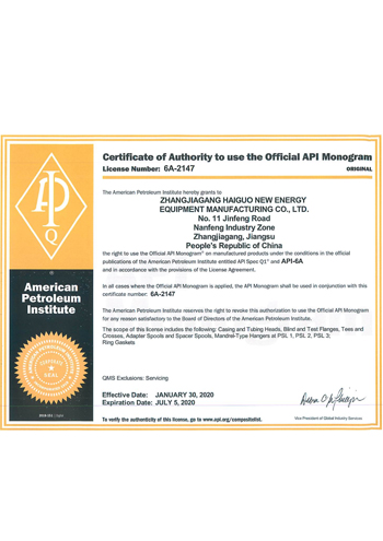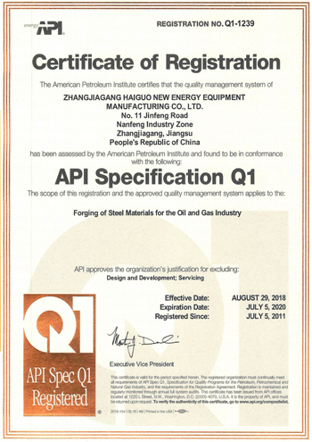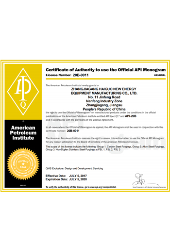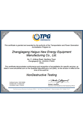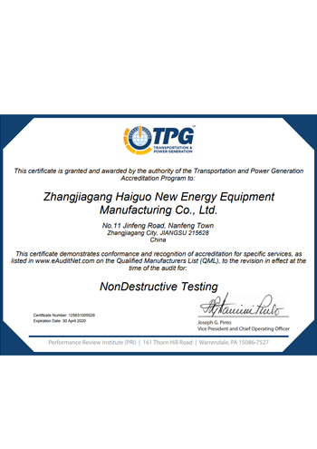 公司取得了美國ABS、法國BV、中國CCS、挪威DNVGL、韓國KR、英國LR、日本NK、意大利RINA等全球八大船級社的工廠認證證書,建立了完善的產(chǎn)品質量管理體系。先后獲得了美國API20B資質證書、API6A資質證書、APIQ1體系證書、TPG的NDT認證證書、TPG 熱處理認證證書、歐盟PED等認證證書,同時也通過了一些國際客戶具有高度專業(yè)要求的資格認證。